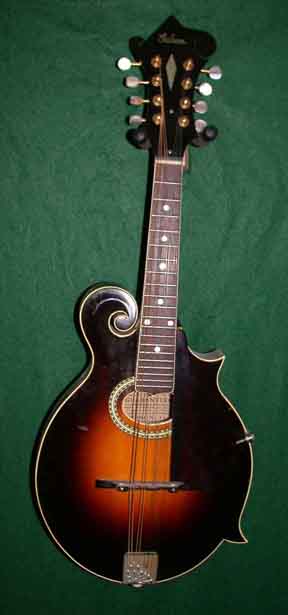 VG-EC, A-style, sunburst finish, spruce top with f-holes, arched sunburst 2-piece maple back, dark